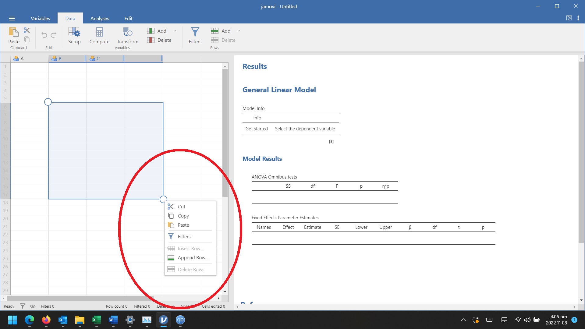 I recently loaded jamovi 2.3.18 and noticed that in the data tab there is this new form of highlighting selected tabs (a circle is at the top left and bottom right of each selection). I now need to double click before typing to enter data into a cell as otherwise nothing enters the cell. Also, I cannot copy and paste as before, but must drag the circles to expand the selection and then right click on either circle to get a usable context menu. Is this jamovi's default behaviour now (I did not see anything in the past release notes) or did I enable this by accident (some feature enabled by shortcut when keyboard was misclicked)?